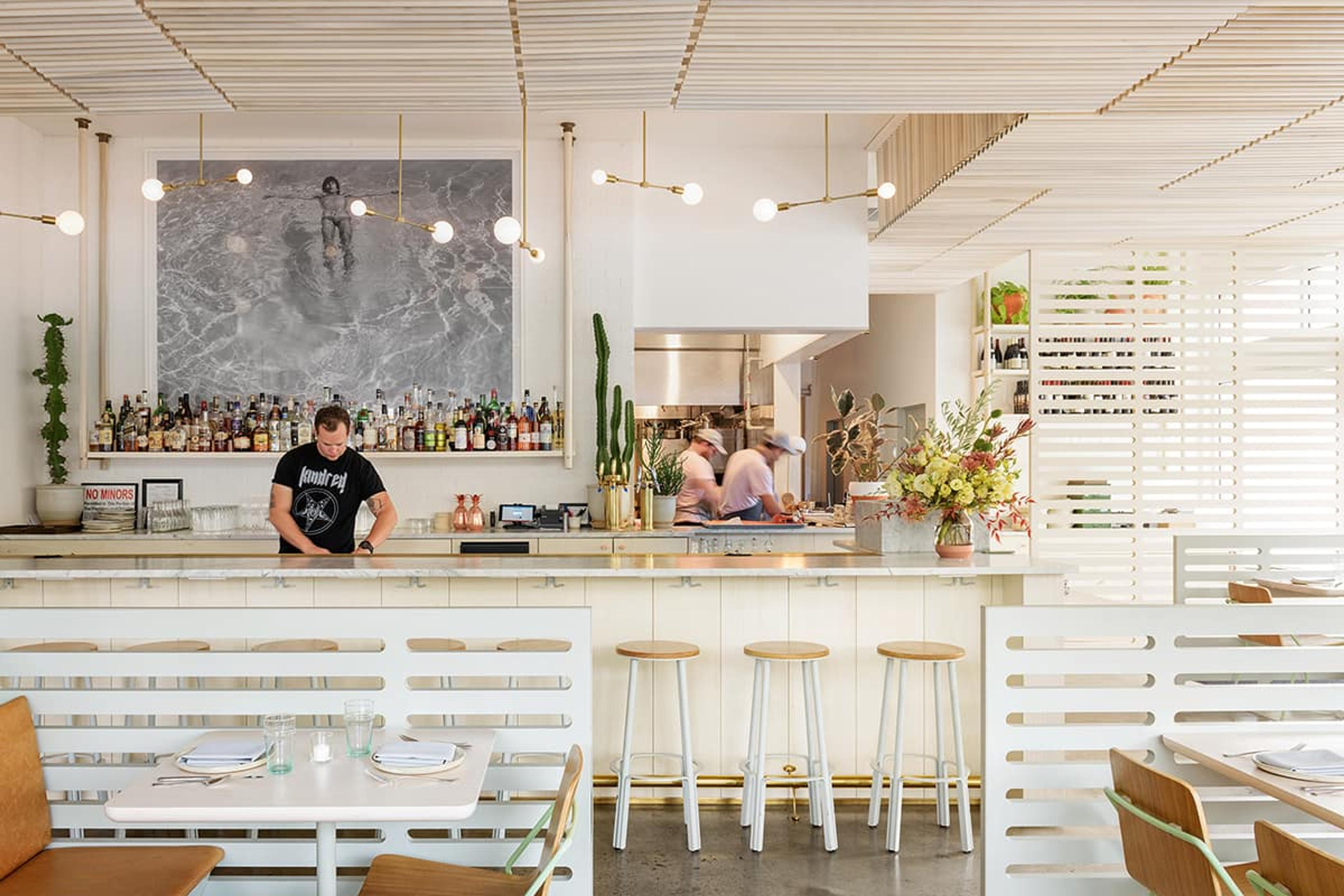 Modern, bright, and mischievous, Tusk is a restaurant serving Middle Eastern fare that’s grounded in Oregon farm vegetables and freethinking in form. It’s experience over fuss, flavor over flair. Breezy in design, the space allows for long dinners outside or a front seat at the bar, overseen by Keith Richards floating in a pool.